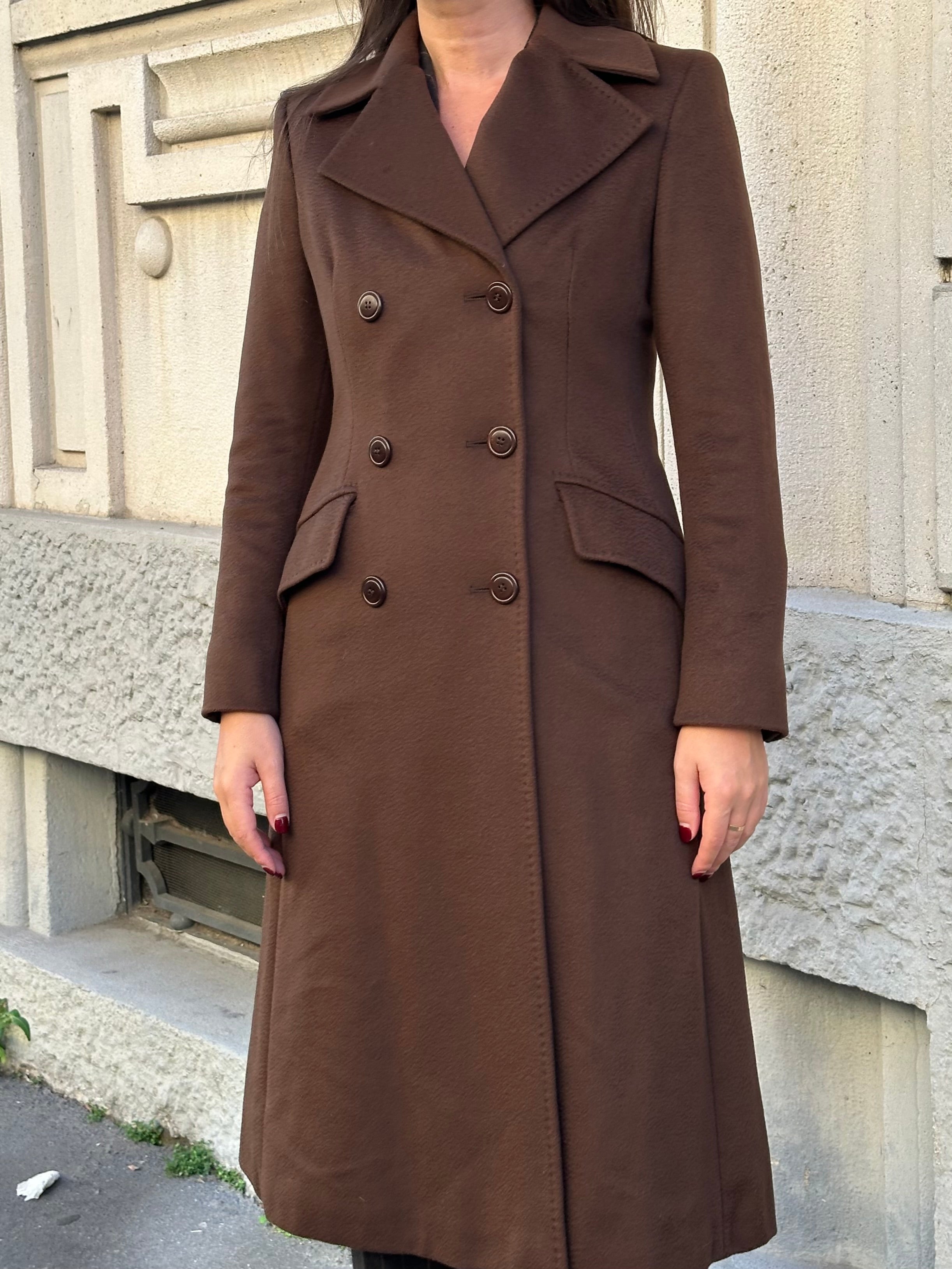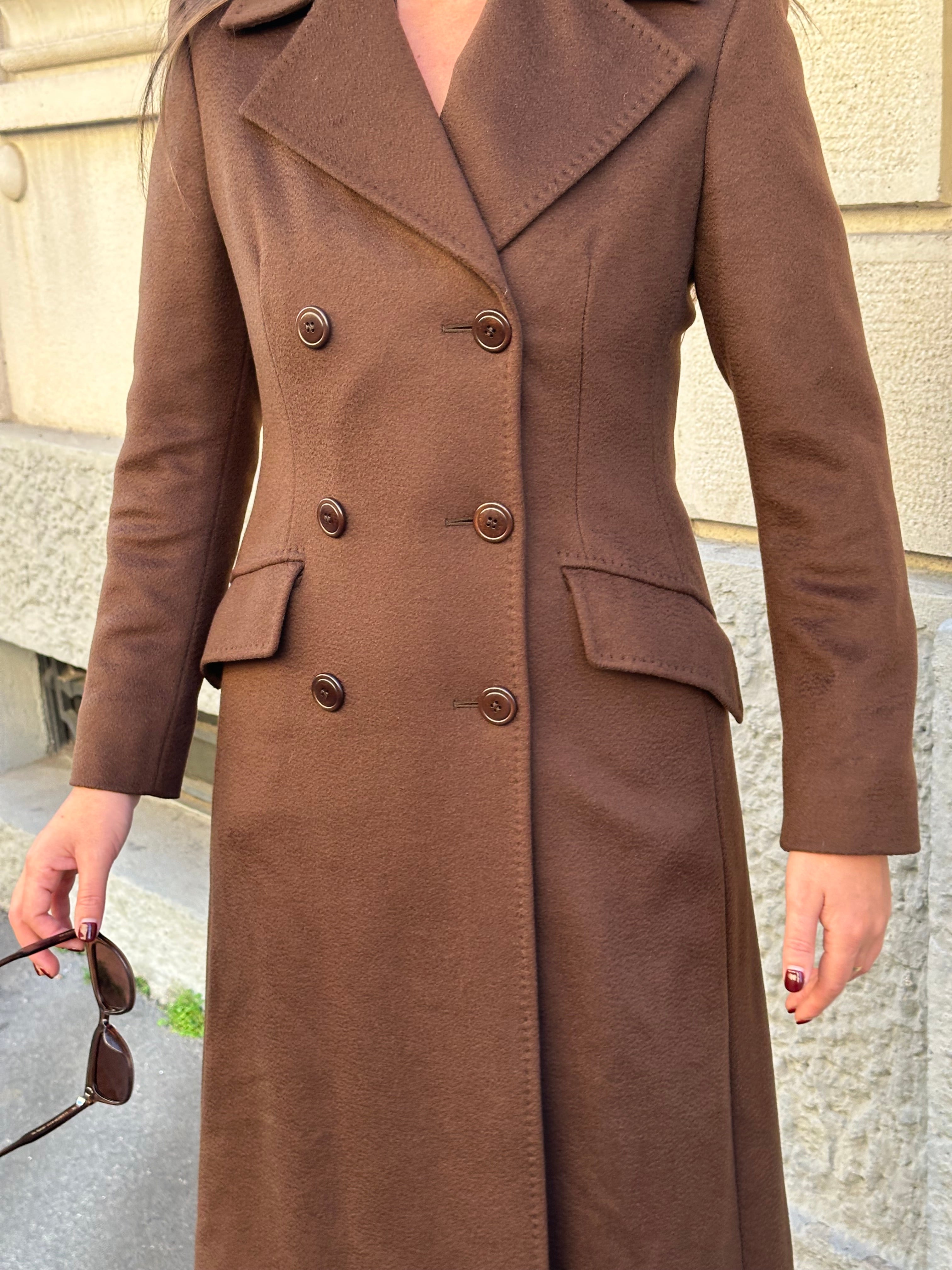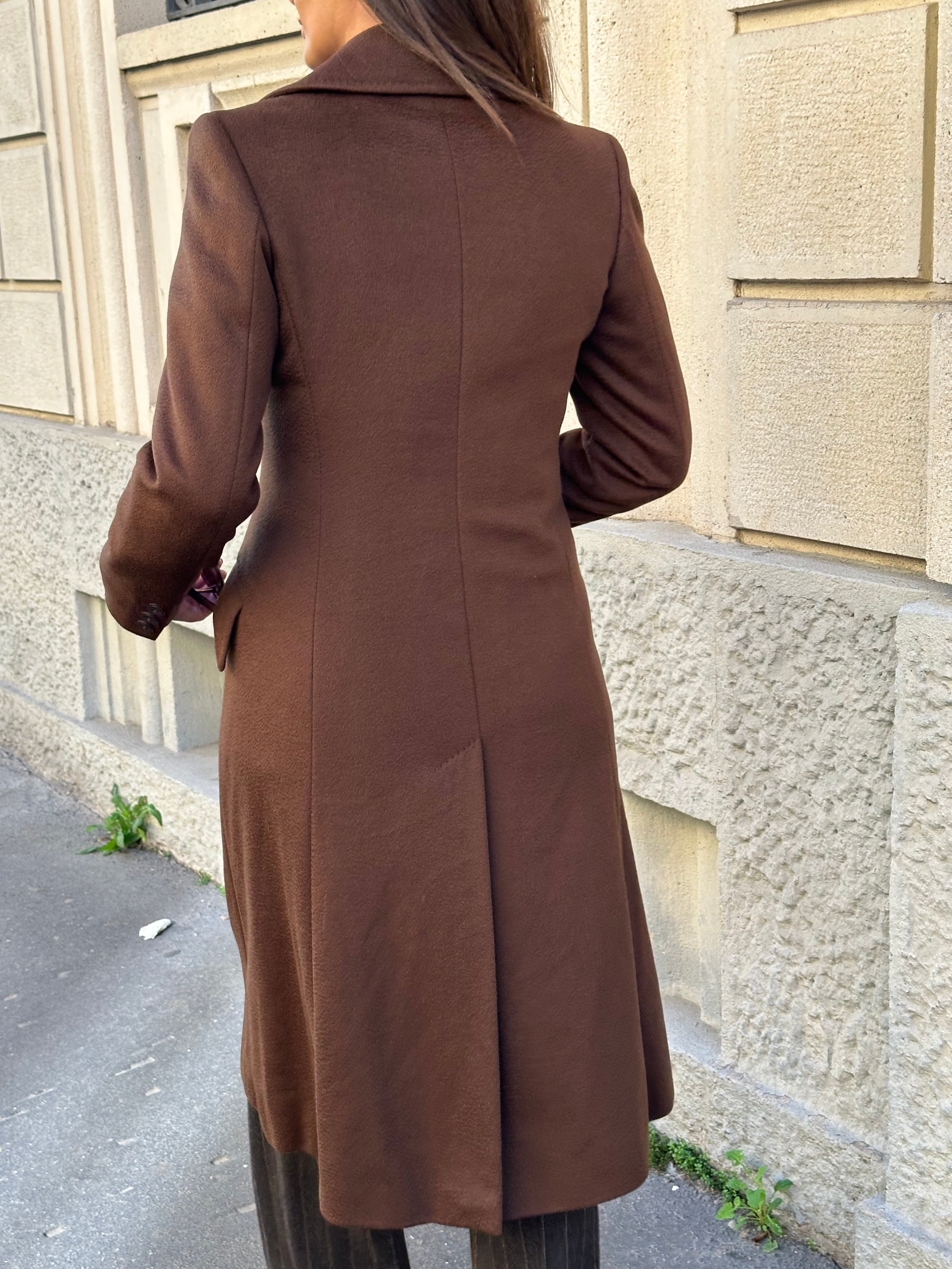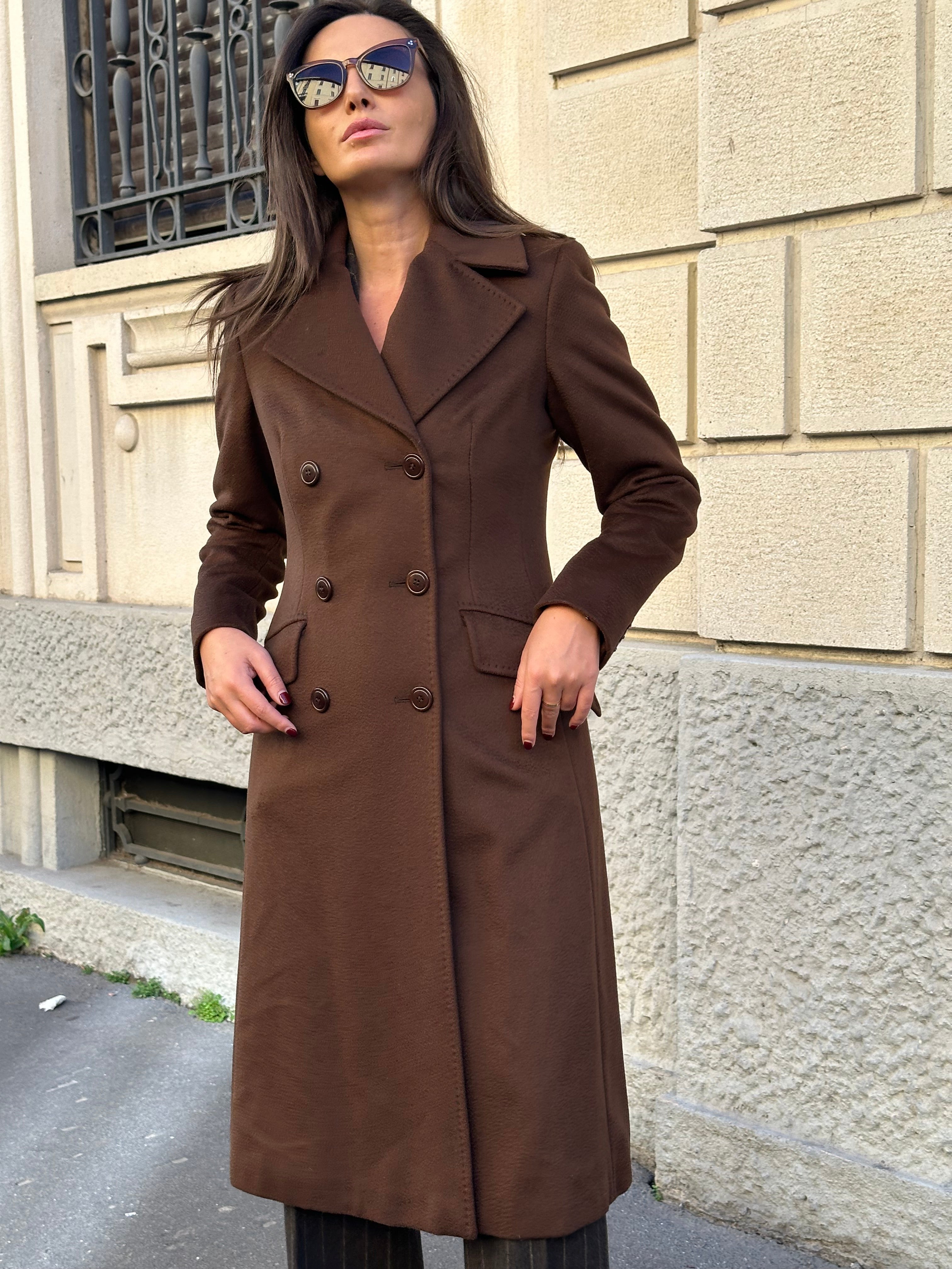 Cappotto Max Mara doppiopetto in 100% cashmere color tabacco. Interno foderato marchiato Max Mara. Taglia 40 (misure spalle 40 cm - lunghezza 112 cm)