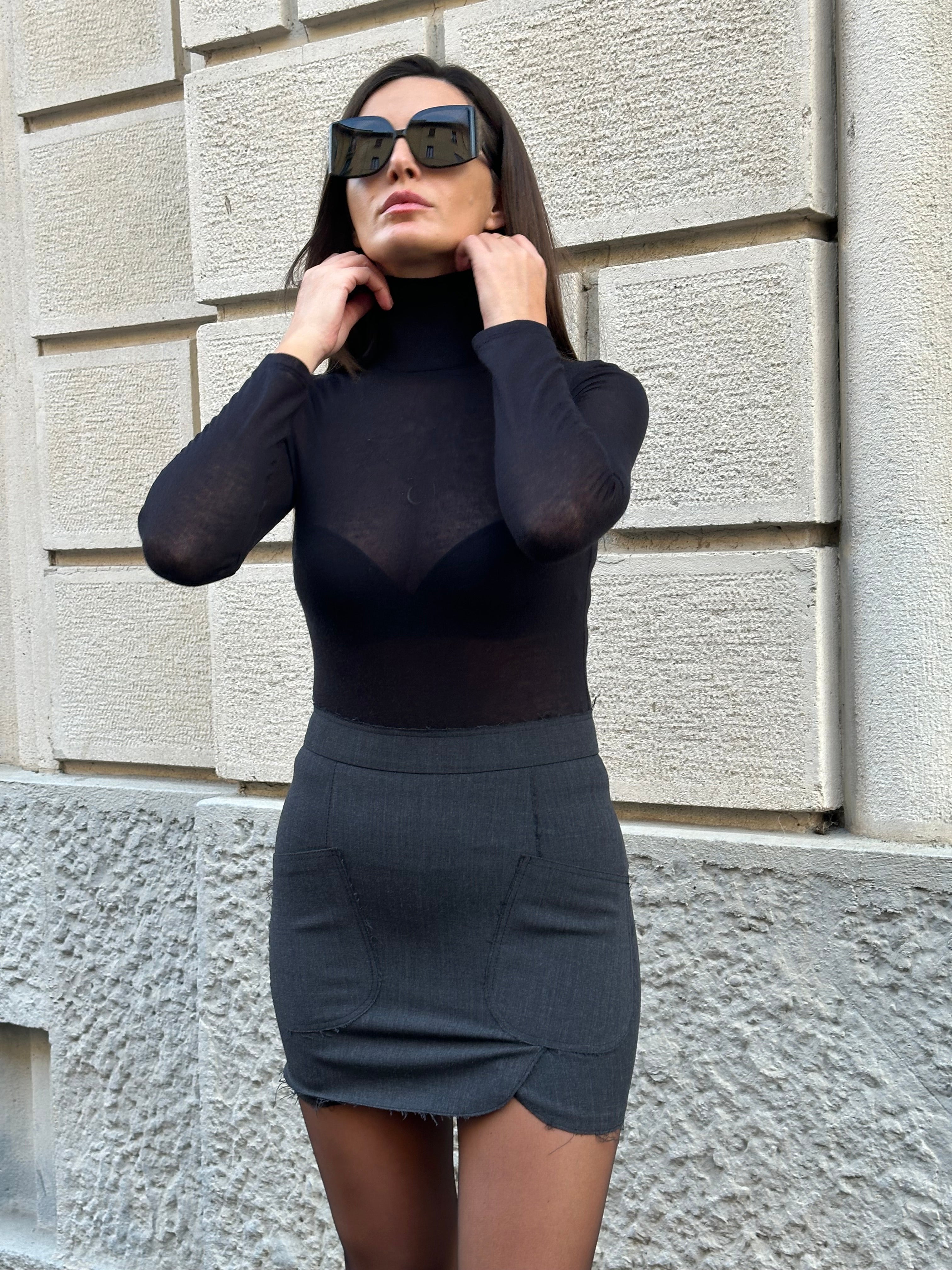 Gonna Dolce&Gabbana in lana grigia. Con tasche laterali. Modello a taglio vivo che la rende molto particolare.