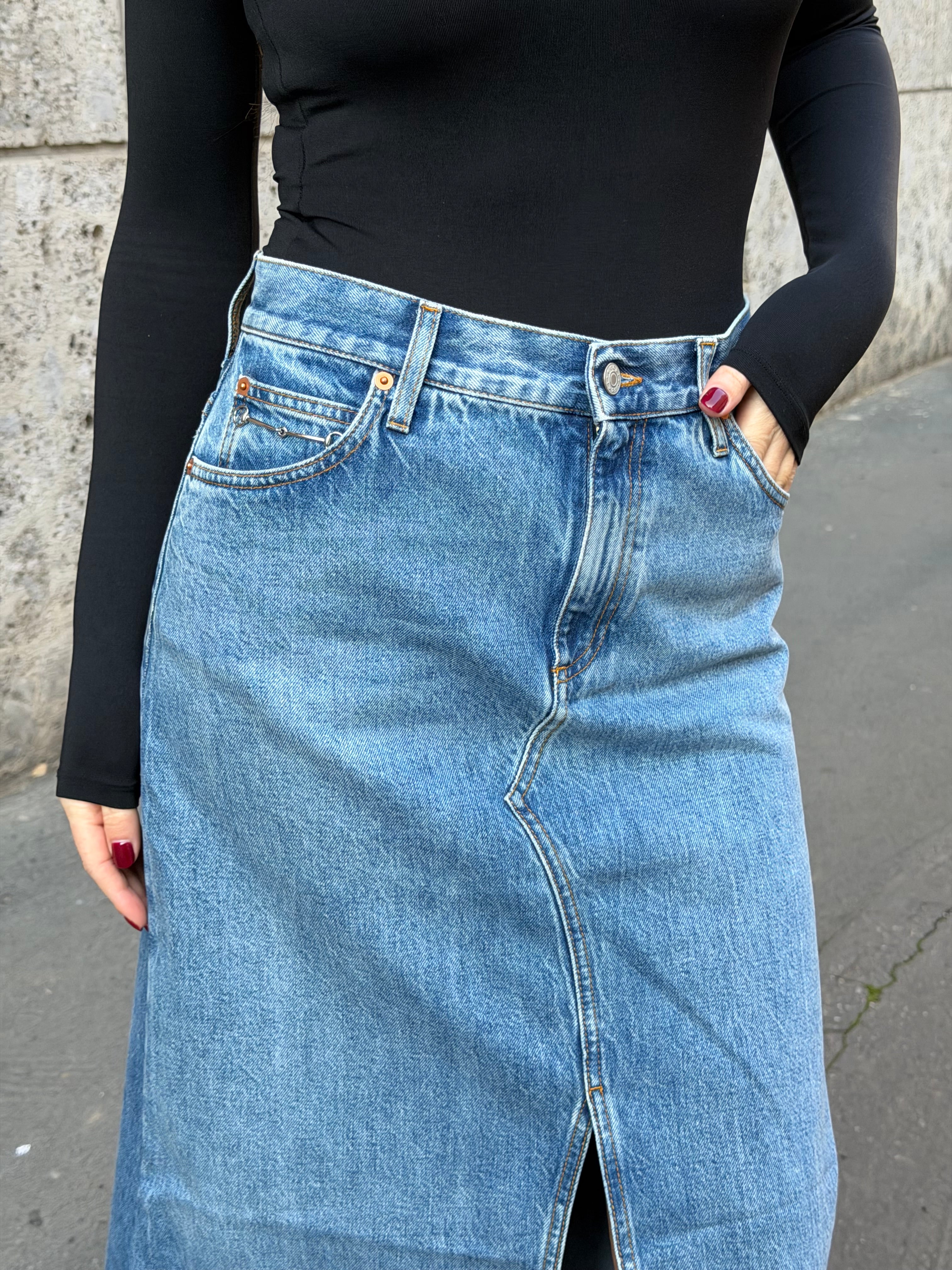 Gonna Gucci lunga con spacco davanti e dietro. In 100% cotone. Morsetto sopra il taschino sinistro.