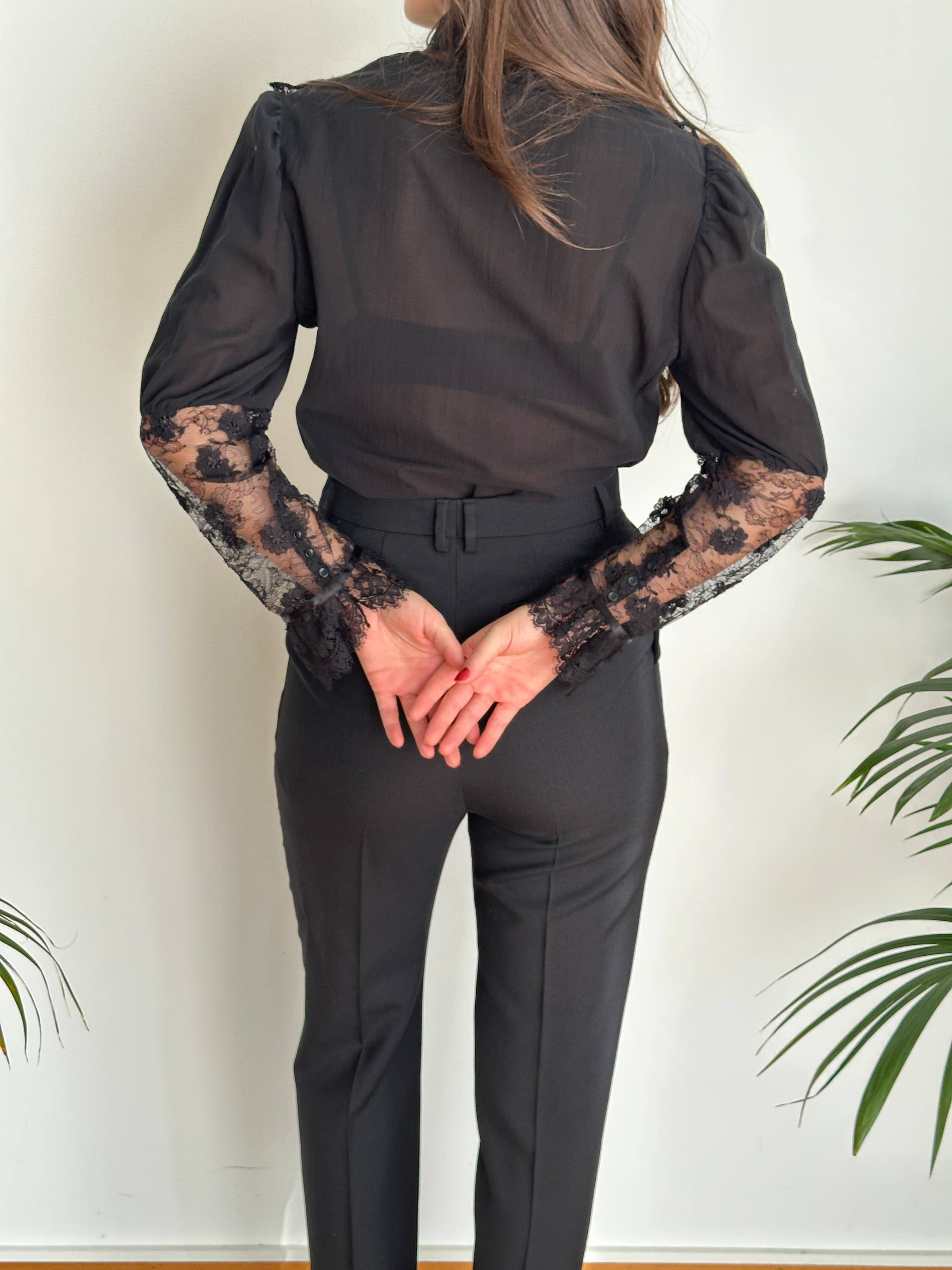 Camicia stile vittoriano in cotone e pizzo ricamato a mano. Veste taglia S/M.