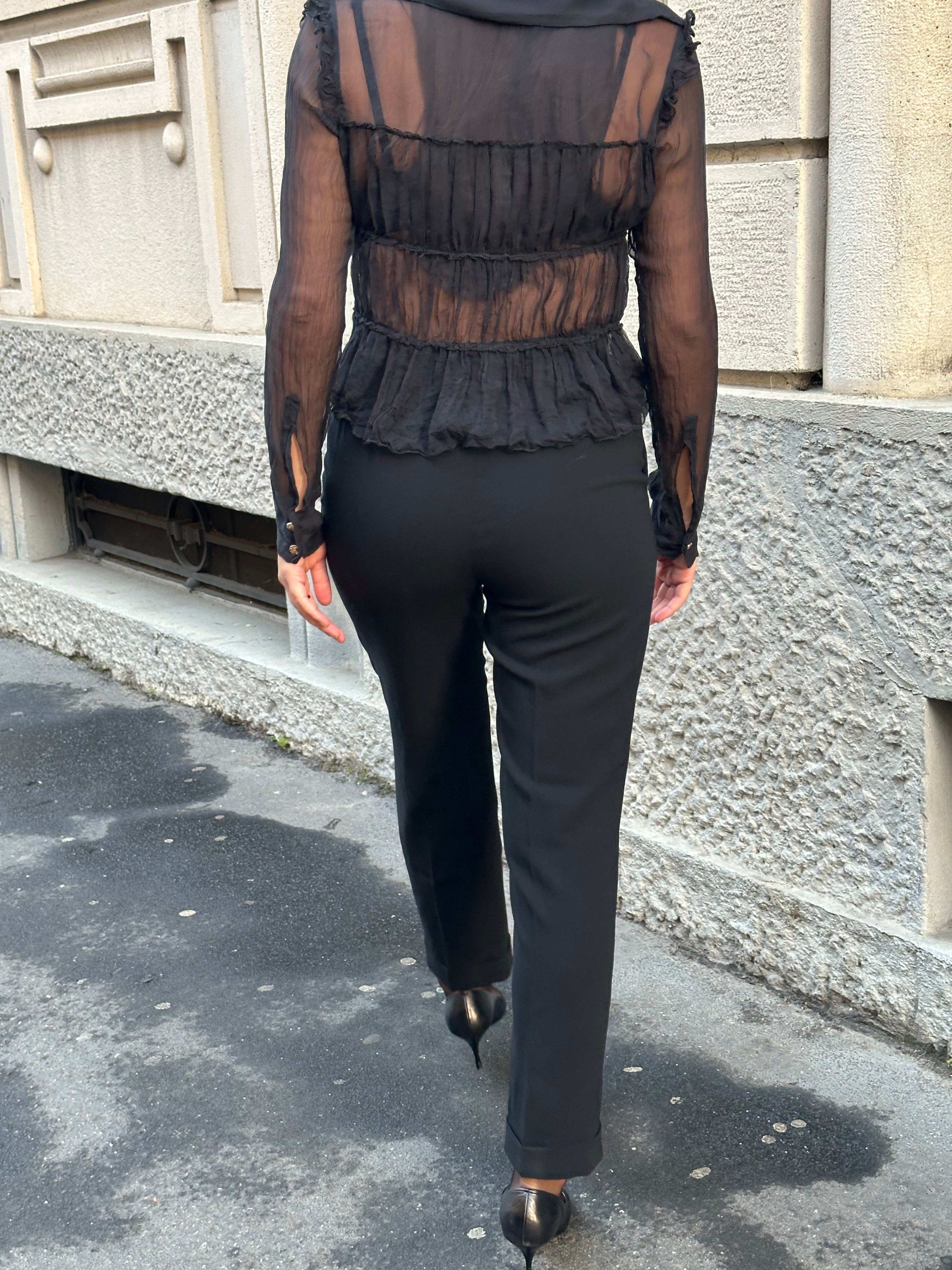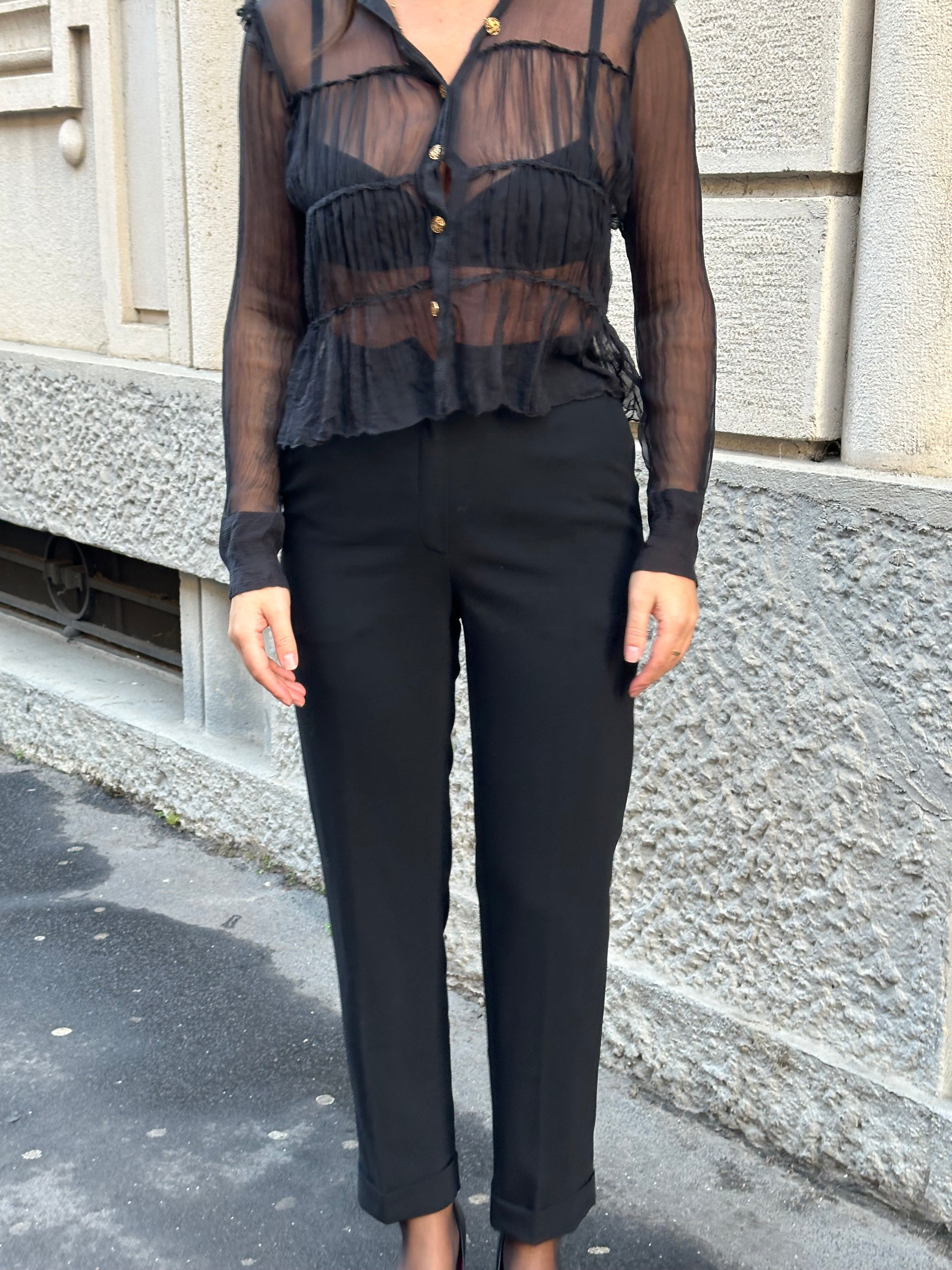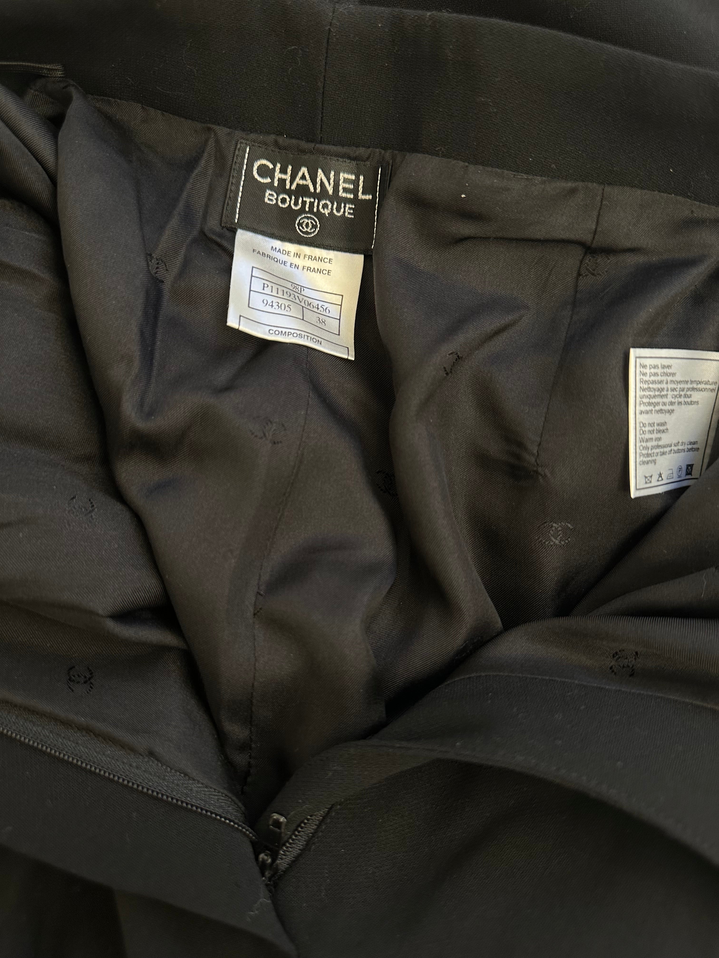 Pantaloni Chanel vintage a vita alta in 100% lana con interno foderato in 100% seta, marchiato CC logo.