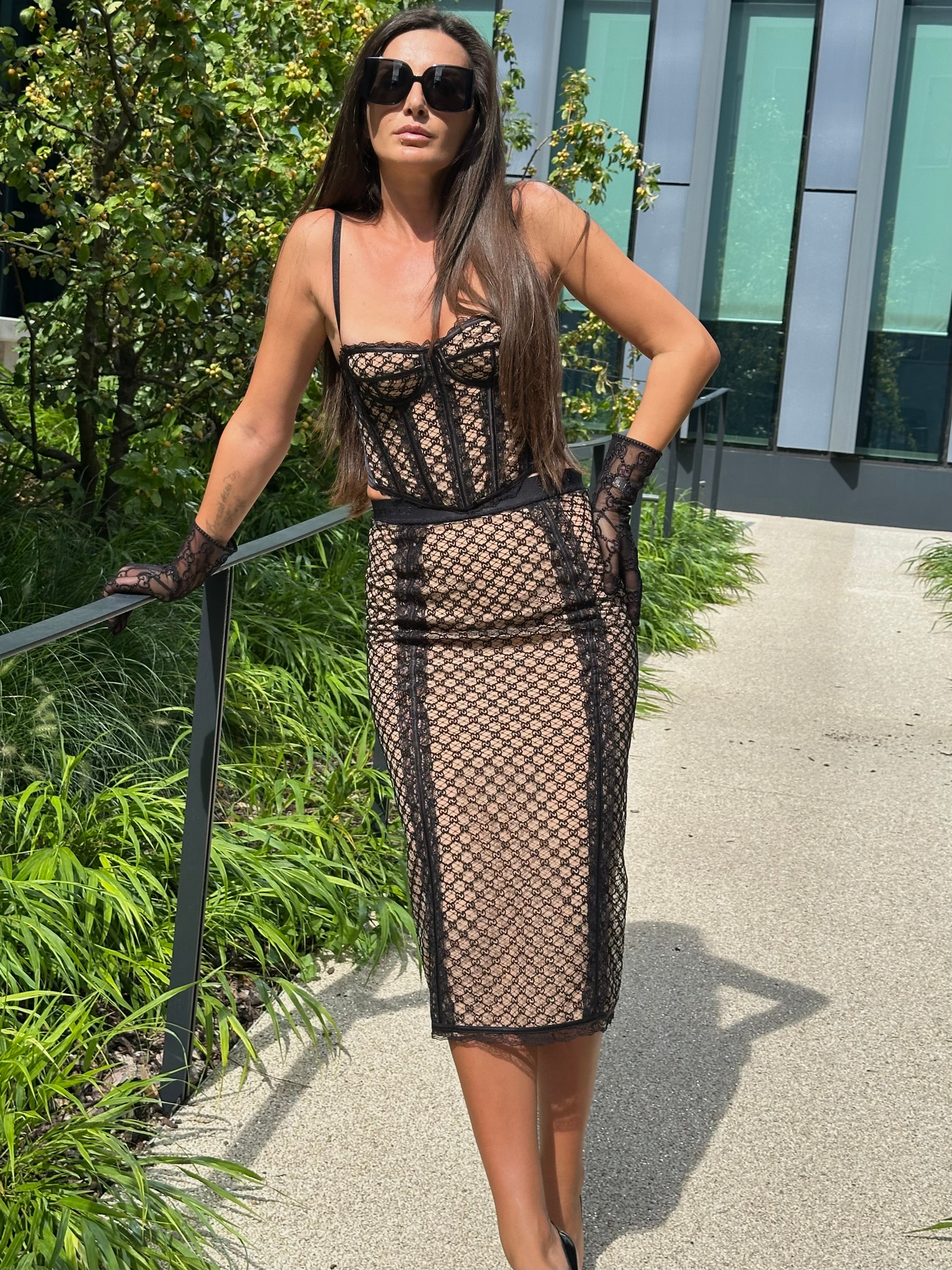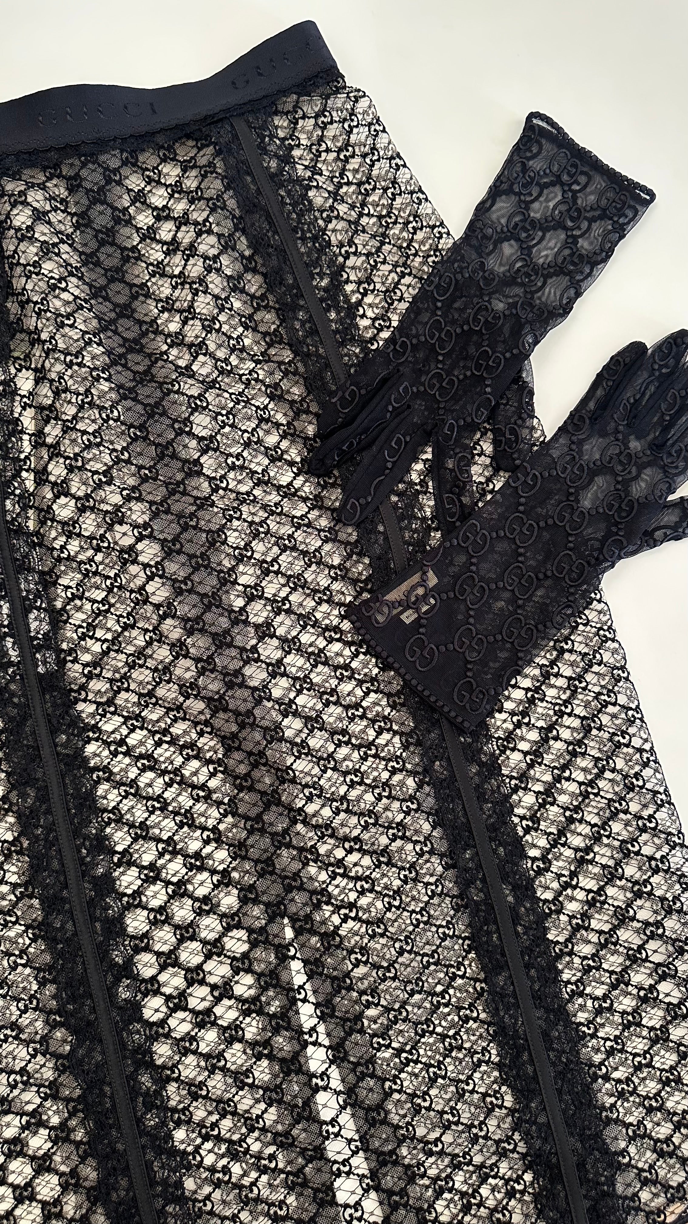 Gonna Gucci GG logo ricamato. Sottoveste rimovibile. Utilizzabile anche in versione trasparente senza sottoveste.
