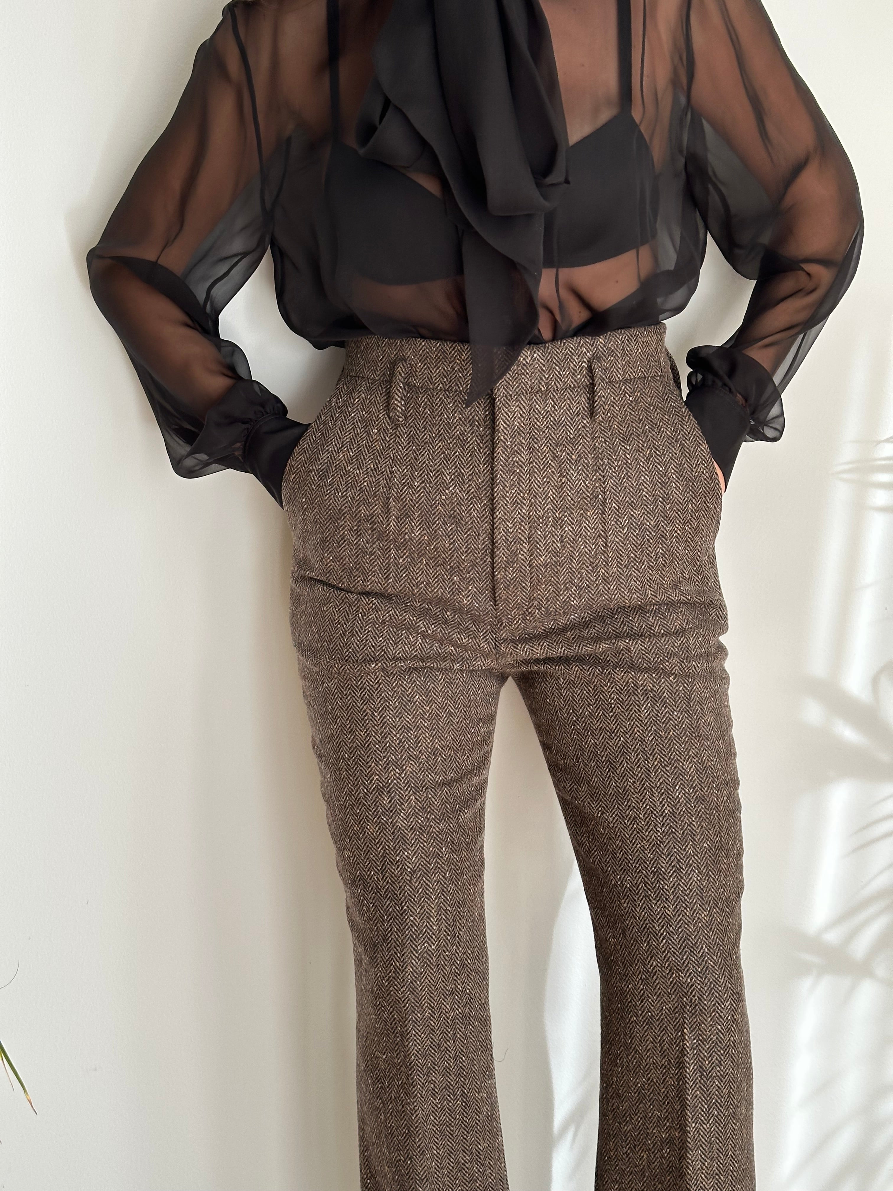 Pantaloni iconici Saint Laurent a vita super alta in 100% lana.